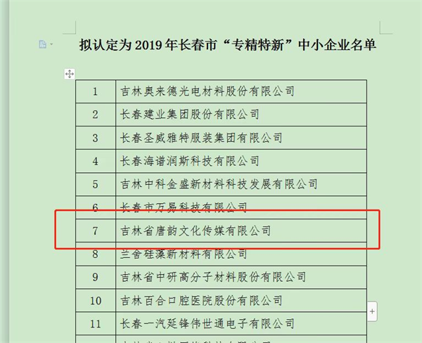 2019年长春市“专精特新”中小企业